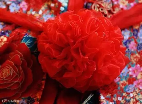 人生四大喜事的“洞房花烛夜”就与“红”密不可分。古人的洞房夜里,红烛摇着温馨的光。红帐床上坐着美丽的新娘,她头上遮一方红巾,绣花红衫加一袭红裙,脚上踩着红缎绣花鞋。红色将女子一生中最美丽的时刻表达得淋漓尽致,也将一生的幸福寄予在其中。