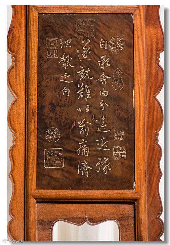 背板诗文局部,仅图章就有八枚之多