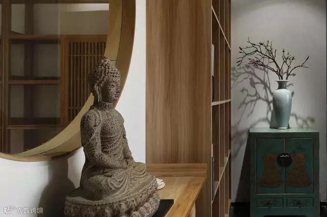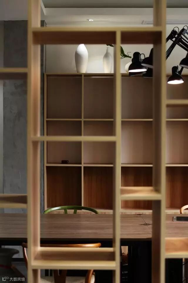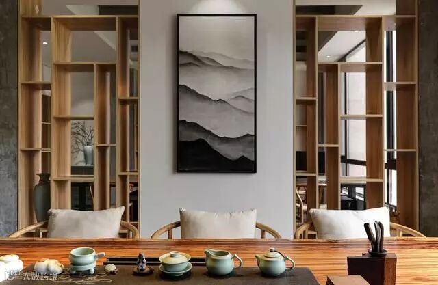 柜体中式扣件点缀将传统的中式元素结合现代的审美,粗旷的原木茶桌。
