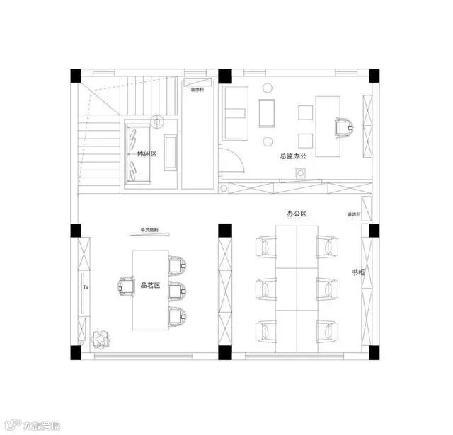 原始的顶面和柱子,保留了新与旧的交流。 张扬的蜘蛛的吊灯,使整个空间更让人富有创作激情。 圆窗做为中式的经典元素,既解决了采光问题,又能与外界互动。 巧妙搭配光影效果和装饰。 楼梯观景一角,螺纹钢相接排列,既起到了装饰作用,又可以做栏杆。