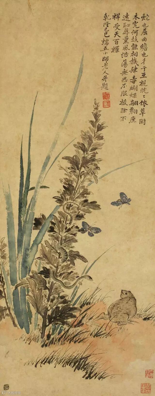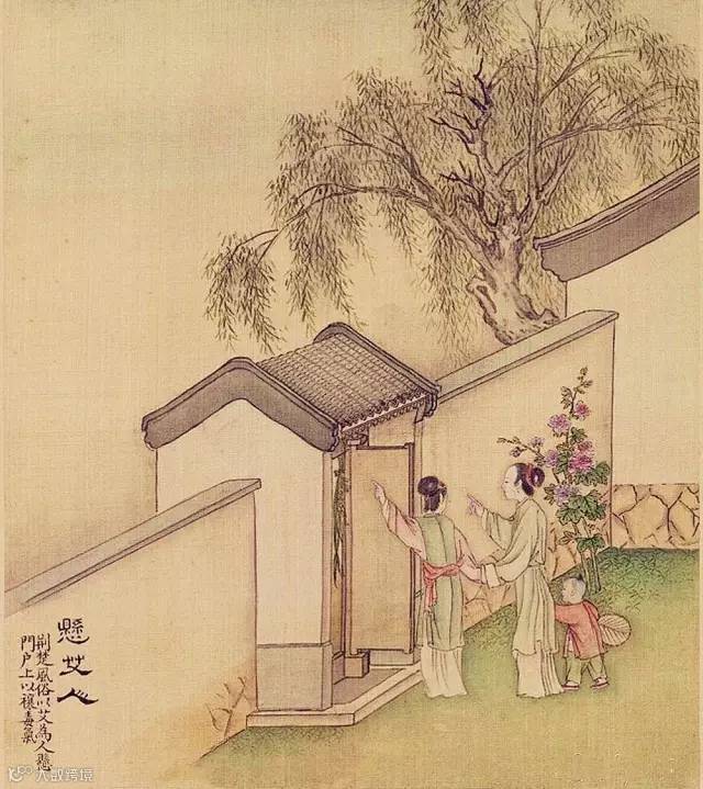 端午在古人心中是个恶日,常设各种可以驱邪的物件。在花草中当以艾草最早、最常见,也最著名。艾是一种重要的药用植物,治病又可驱虫。五月正直艾草生长旺期,此时功效最好。端午这一天,人们采摘艾草,编成人形,悬挂在自家门口,祈祷消除毒灾。《荆楚岁时记》汪文云:“今人以艾为虎形,或剪彩为小虎,沾艾叶以戴之。”明清妇女都会在端午时节头簮艾花,小孩子会身贴艾虎,成为端阳一道风景。