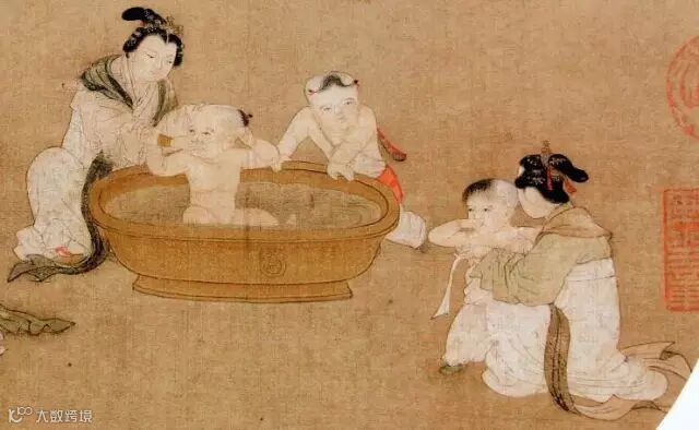 南宋 浴婴图 (局部)中 描绘端午节为孩子进行芳香药浴的场面