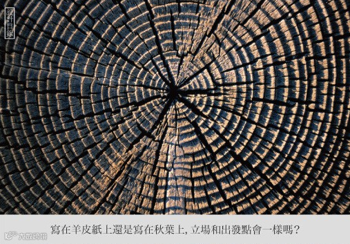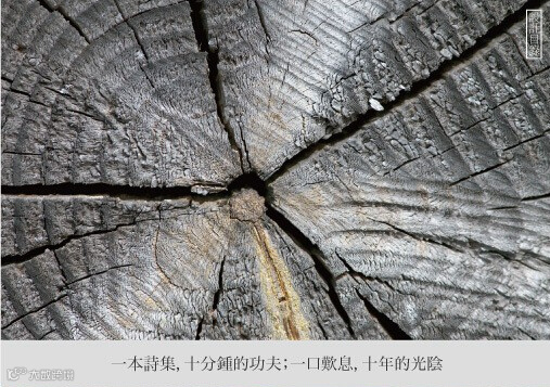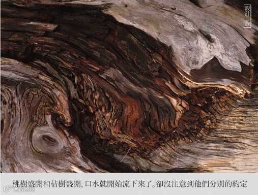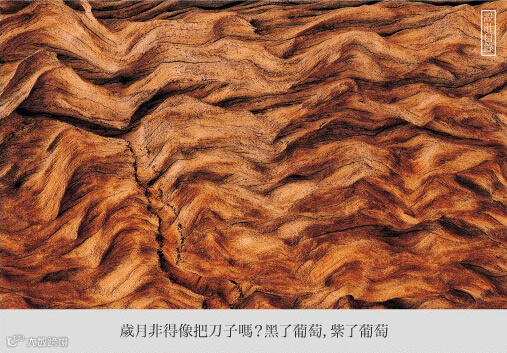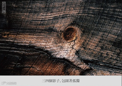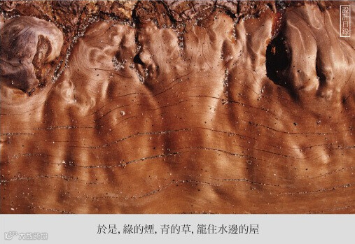 看到這些木之切片,木之紋理,看得心都會顫動。想起年少時寫在日記裡的短詩,一晃已過二十年,依然還能想起,自己站在那片森林裡,看到倒下巨木的情思。總以為,自然才是藝術之母。我們現在所做的一切不過是竭力模仿自然隨意之舉,且永不會達到。