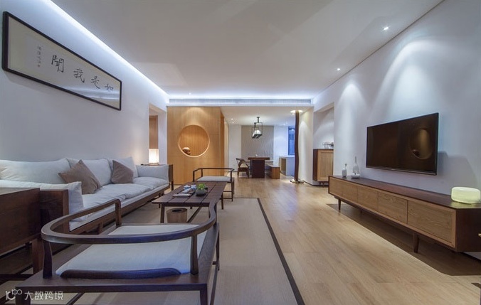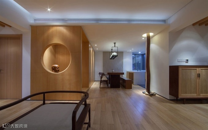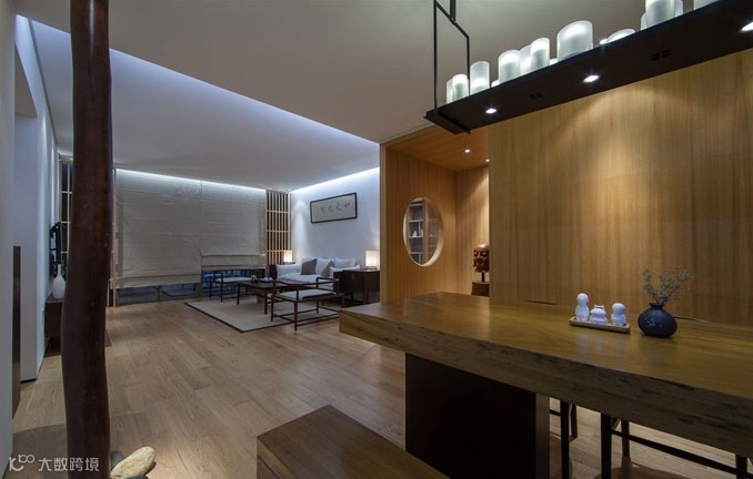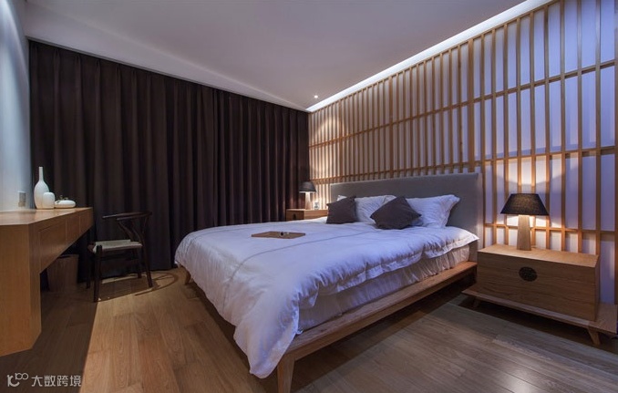 本案的主题突显寂静空灵的日式禅意空间,它让人感受到了一次美的洗礼-空明、澄净、洗心。传承了日本室内设计深谙禅宗之理,将禅宗的简素与自然,孤傲与幽玄,脱俗与寂静的美学特性表现出来,宛如一首凝练的诗,简素之美的物体,用木料、石头、竹子、素面的油漆、空洞的实木花格,原木的素色和原木的清晰纹理等大量天然之材,透射出朴素,内敛的气息,使得整个空间展现出一种禅宗的空灵意境。