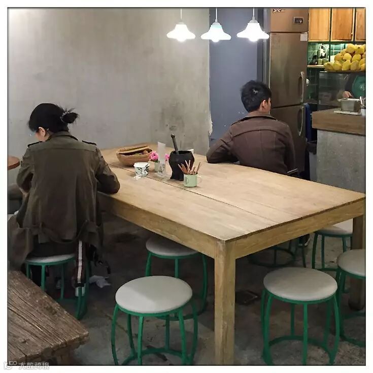 宝珠的每家店装饰风格还是各不相同的。老榆木门板制作的小桌小凳必不可少,又各不相同。