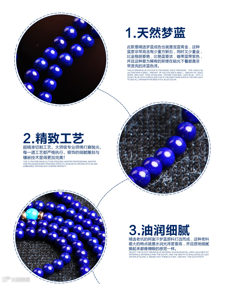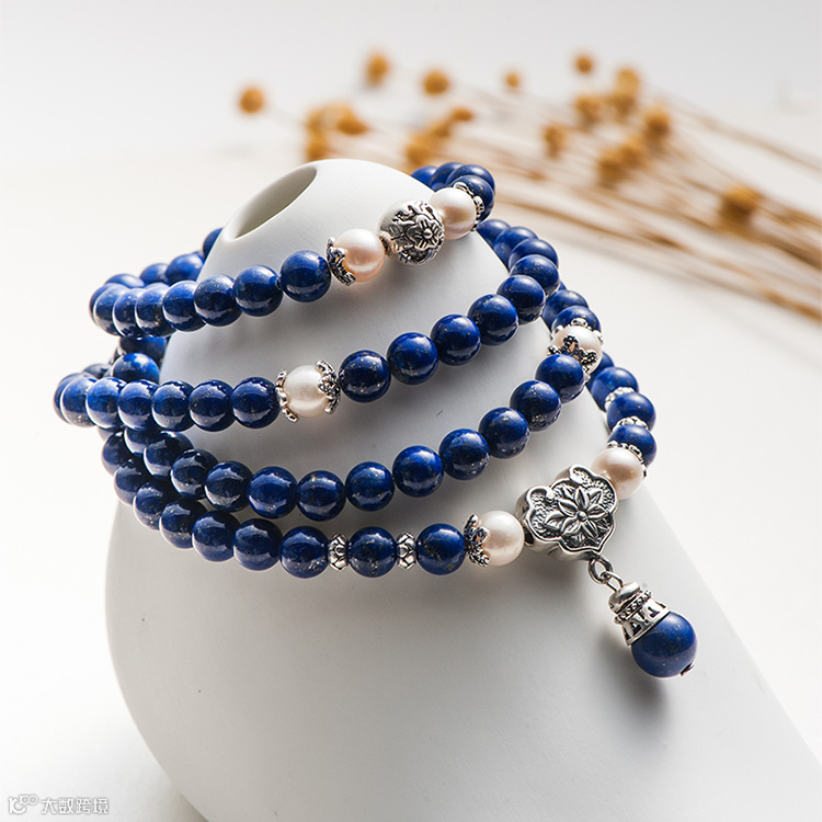藏佛瑰宝 青金石又称天青石,是古老的玉石之一,它以其浓艳的蓝色赢得人们的喜爱。青金石对应喉轮,可改善喉咙痛、气管、呼吸道方面的疾病,也可刺激甲状腺、加快新陈代谢,还可舒缓皮肤过敏。对应眉轮,属第三眼能量,可帮助催眠及深层的冥想,可增强观察洞察力,提升灵性。可激起人高贵清新、温文儒雅的气质情操。