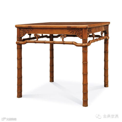 ▲黄花梨雕竹叶纹方桌