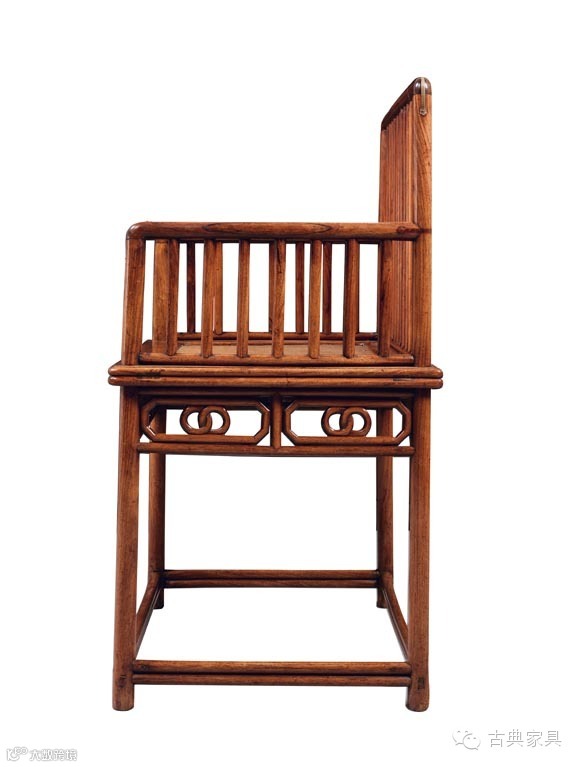 这种椅子后背和扶手之内都装有形似梳齿的直棂,又被称作“梳背椅”。清早期十分流行藤竹家具,并且有许多其他材质的仿竹家具面世。