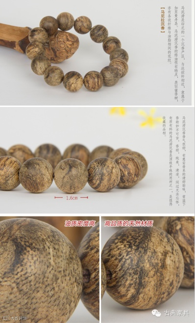 第三,饰品,因为沉香出不了大料,所以适合做手串、挂牌、摆件。