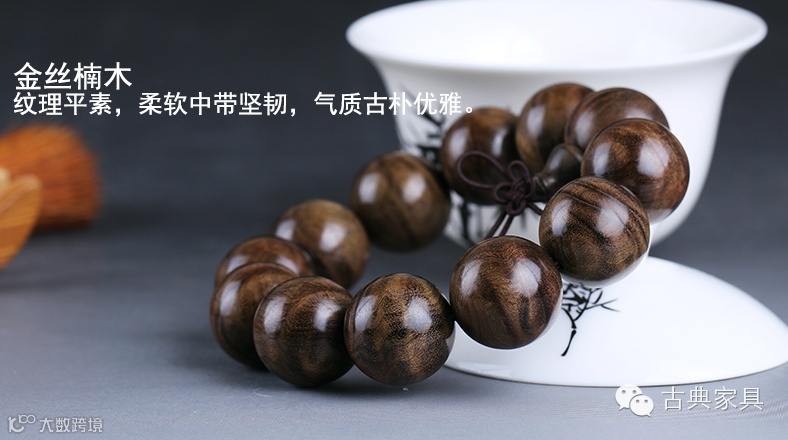 从大的方面来说楠木分为三种:香楠、金丝楠、水楠,其中金丝楠木最为名贵。楠木成料较大,节和疤很少,所以在古代时期楠木多是作为建筑材料使用的。由于近年来楠木的数量骤减,大料较为稀少,所以大多楠木用在家具的边角料里和制作手串上。