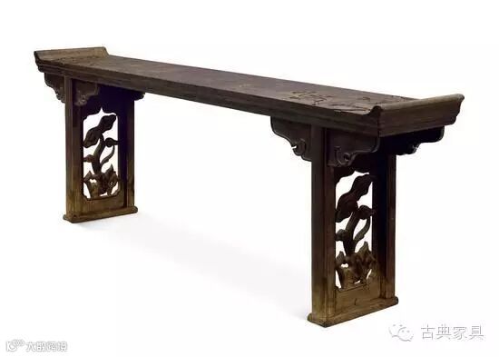 【文化典藏】明末清初 黄花梨螭龙纹剑腿平头案 案面攒边镶“一块玉”独板面芯,黄花梨纹质生动华美。边抹冰盘沿上舒下敛,自中上部内缩至底压窄平线,抹头见明榫。案面下接牙板,牙头透雕回旋螭龙,玲珑剔透,以夹头榫与腿足相接。两侧腿间装横枨,上部镶开光绦环板,下端亦嵌壸门式花牙。方材腿足上舒下敛为剑腿式,沿边起灯草线,正中起皮条线,足端浮雕兽面纹。线脚繁简得中,使得整案看起来挺拔精神。造型考究,古拙端庄, 构件细节处处可见精湛匠心。