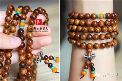 需要特别注意的是:木头珠子不要在任何时候接触较大的水分,如果珠子脏了可以用微微湿润的棉布擦拭几遍就好了,然后放置一段时间再盘玩,盘的时候珠子的所有区域都尽量盘到,特别是孔口,盘珠子最忌的就是急功近利,你只能慢慢来一个过程一个过程的来,随着珠子的变化也可以同时得到一种精神的愉悦。