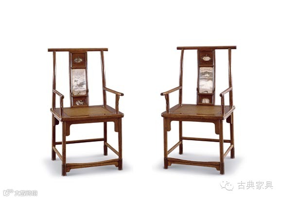 名称:黄花梨嵌大理石四出头官帽椅一对
