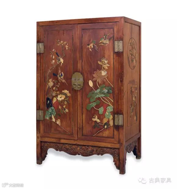 名称:黄花梨嵌百宝花鸟纹方角柜