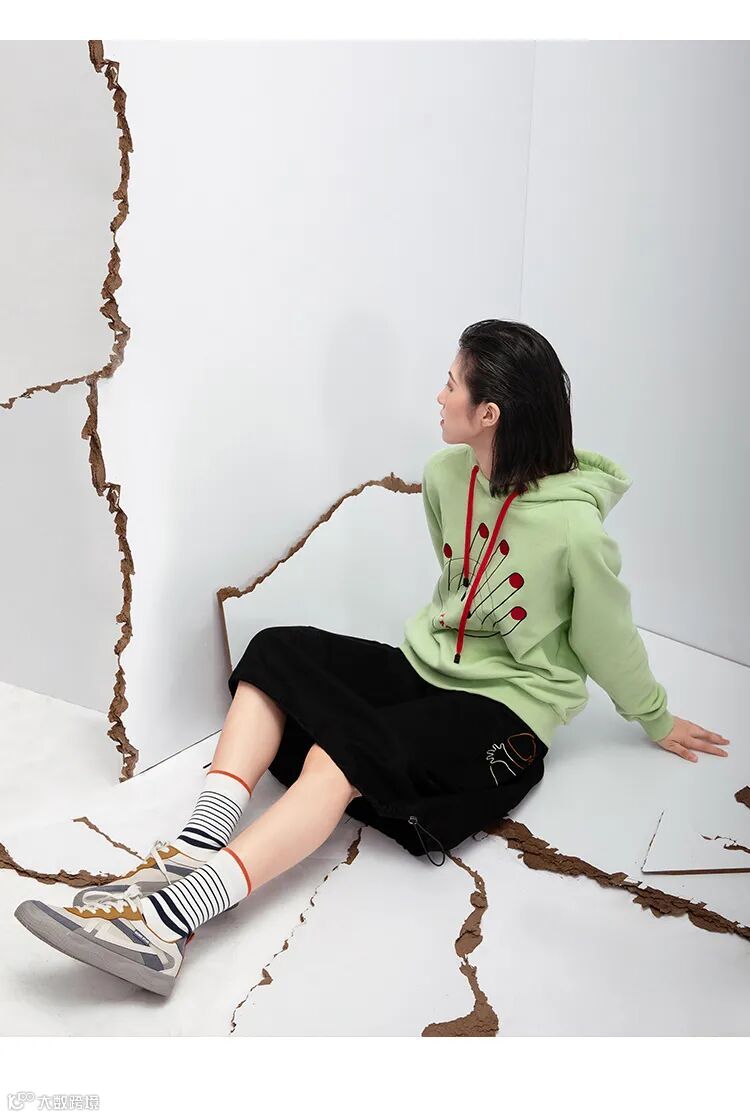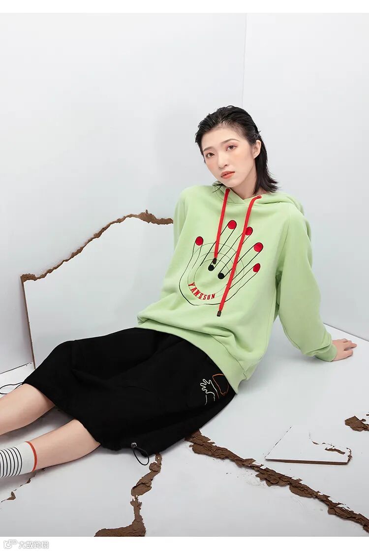 清新的薄荷绿、抽绳连帽、主题系列的图案