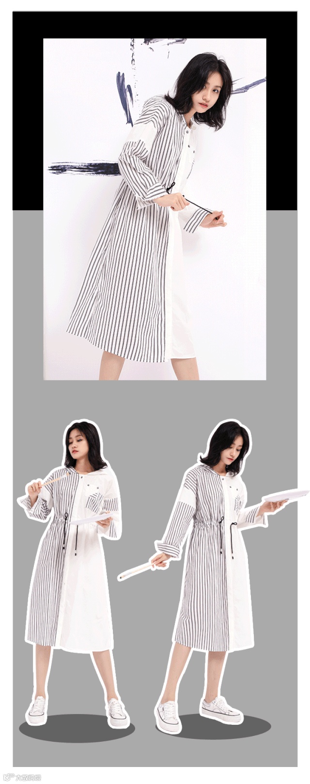腰部绑线收腰设计,让裙摆形成A字