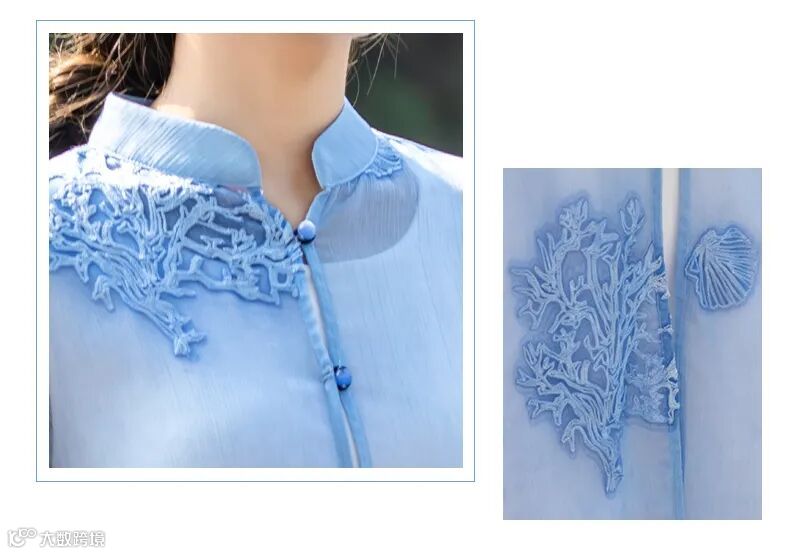 精致绣花点缀领口与袖口