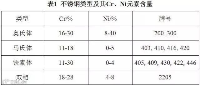 四种类型的不锈钢以及合金元素的作用