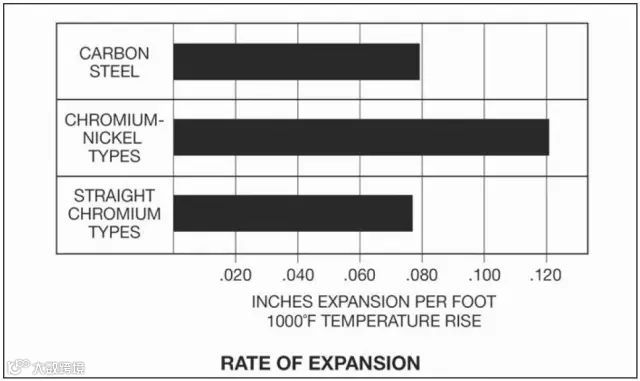 需要指出的是,奥氏体不锈钢的热膨胀率比碳钢高50%。当焊接时,热膨胀率的差异会产生内应力,从而导致裂纹产生,这时需要选择合适的焊材或指定合适的焊接工艺(图3)。