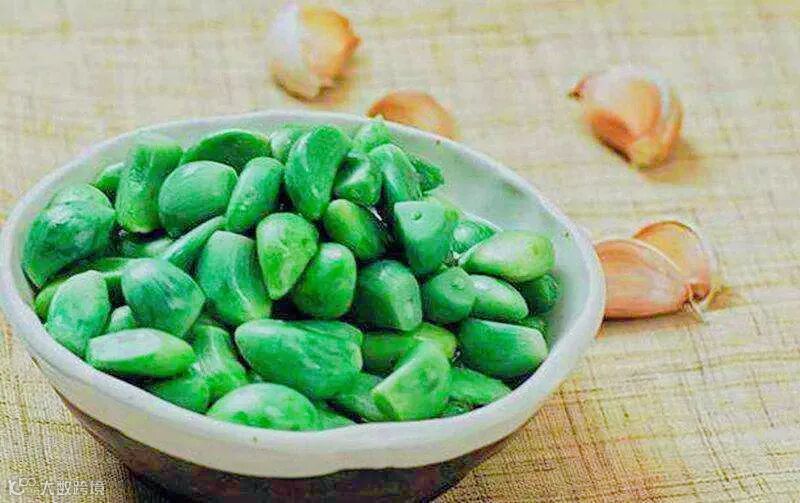 一到腊月初八,过年的气氛一天赛过一天,华北大部分地区在腊月初八这天有用醋泡蒜的习俗,叫腊八蒜。腊八蒜的做法极其简单,将剥了皮的蒜瓣儿放到一个可以密封的罐子、瓶子之类的容器里面,然后倒入醋,封上口放到一个冷的地方。慢慢地,泡在醋中的蒜就会变绿,最后会变得通体碧绿的,如同翡翠碧玉。吃起来脆香提神。