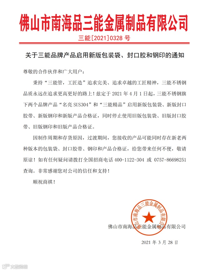 佛山市南海品三能金属制品有限公司是一家集开发、设计、生产、销售于一体的大型不锈钢管材生产企业。公司生产的三能牌不锈钢、名亮正宗304等优质不锈钢管,广泛应用于世界各地市政工程、楼梯扶手,护栏,防盗网,路标设施、厨具、汽车配件、家具、轮船等行业。今年三能公司又新研发生产了彩色不锈钢管、欧式不锈钢管等系列高端时尚、新颖的产品,为单调的装饰管注入了新的元素。公司本着”以质量求生存、以诚信求发展”、坚持生产企业、合作伙伴、消费者三方共赢的三能理念,一年上一个新台阶。目前公司产销量已超过去年的规模,产品得到海内外客户的认可和信赖。公司将继续坚持科学发展观,与时俱进,继续以一流的产品和一流服务与海内外客户携手共进,再创辉煌!