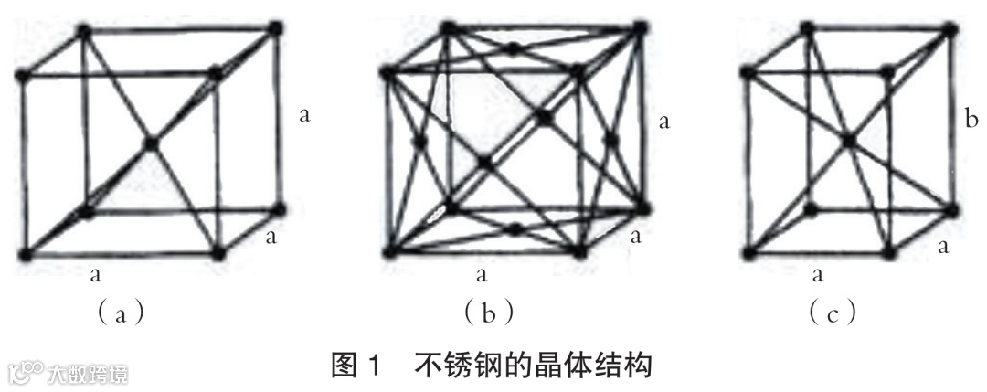 大多数金属都是一种主要金属元素和一种或多种人为添加的其他元素所形成的混合体,该混合体被称为合金,不锈钢就是一种合金。一般情况下,固态金属和合金都是由不规则排列的晶粒构成,这些晶粒有着确定的晶体结构。不锈钢的许多特性取决于这些晶体结构。图1是晶体结构示意图,图中的黑点表示原子。