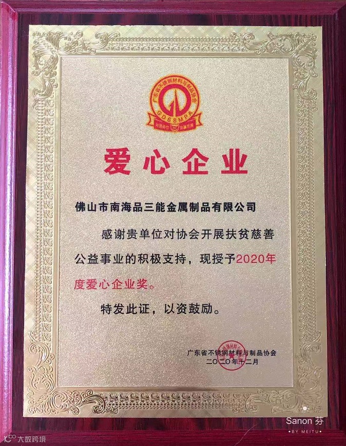 佛山市南海品三能金属制品有限公司是一家集开发、设计、生产、销售于一体的大型不锈钢管材生产企业。公司生产的三能牌不锈钢、名亮正宗304等优质不锈钢管,广泛应用于世界各地市政工程、楼梯扶手,护栏,防盗网,路标设施、厨具、汽车配件、家具、轮船等行业。今年三能公司又新研发生产了彩色不锈钢管、欧式不锈钢管等系列高端时尚、新颖的产品,为单调的装饰管注入了新的元素。公司本着”以质量求生存、以诚信求发展”、坚持生产企业、合作伙伴、消费者三方共赢的三能理念,一年上一个新台阶。目前公司产销量已超过去年的规模,产品得到海内外客户的认可和信赖。公司将继续坚持科学发展观,与时俱进,继续以一流的产品和一流服务与海内外客户携手共进,再创辉煌!