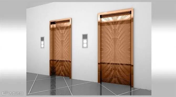 二是应用在电梯轿厢装饰板上。蚀刻图案一般为对称形状。多为跟厅门装饰板搭配使用。