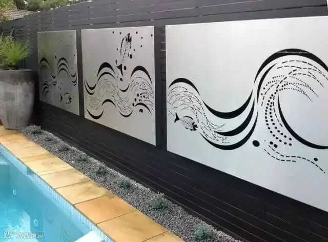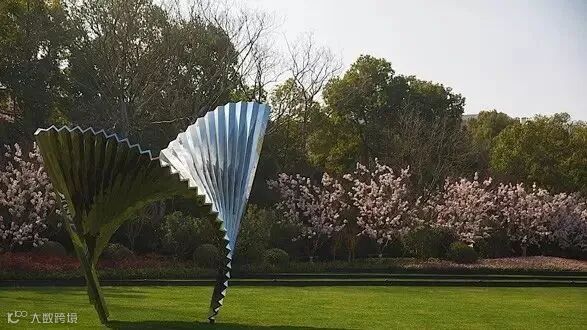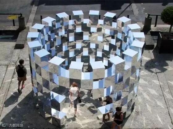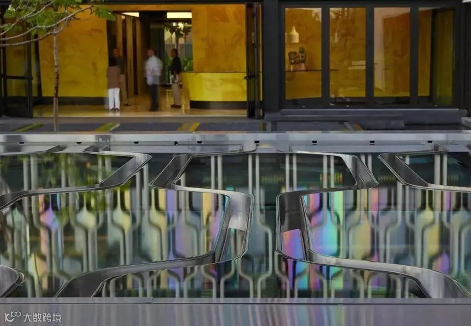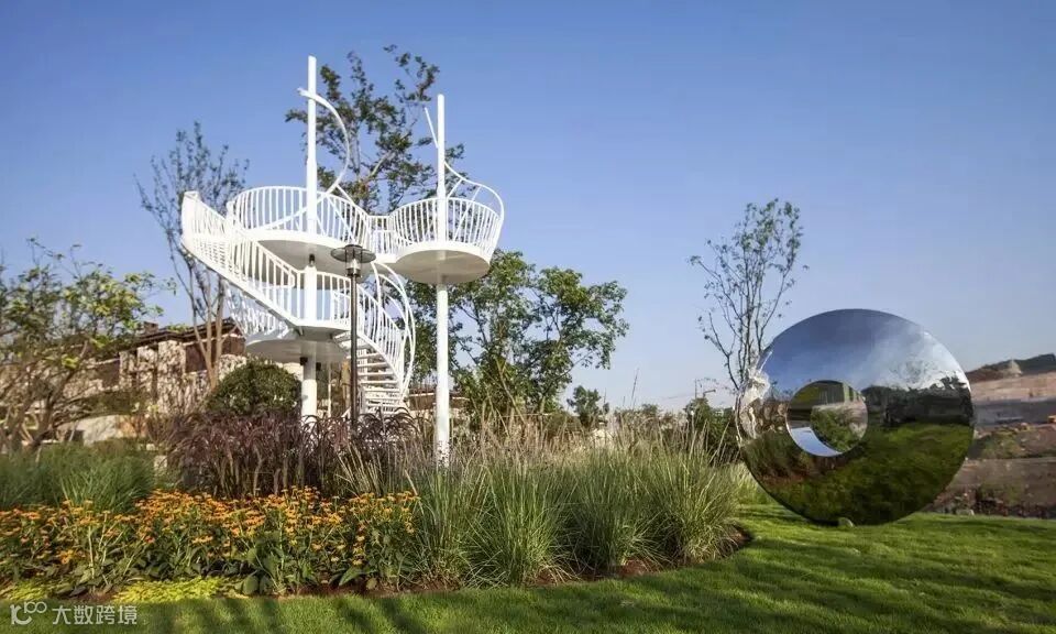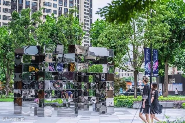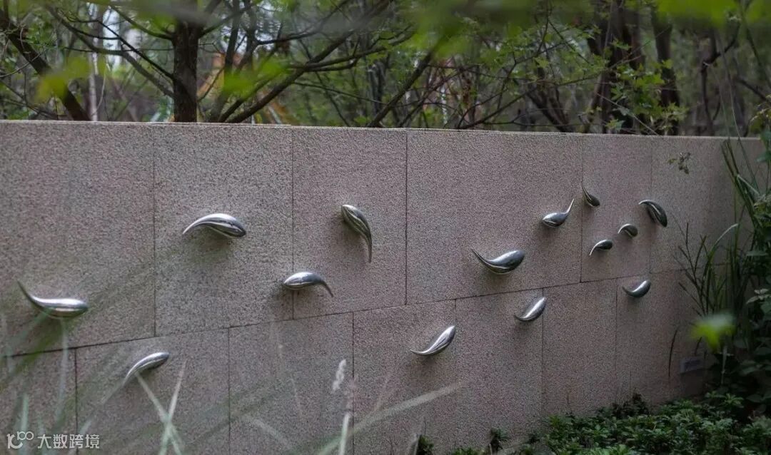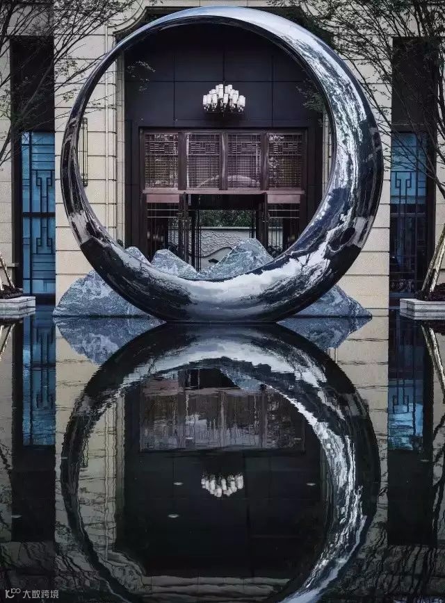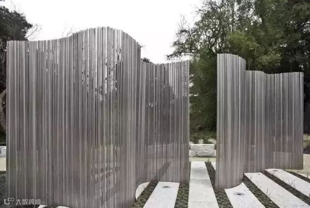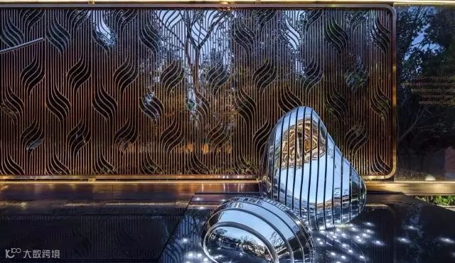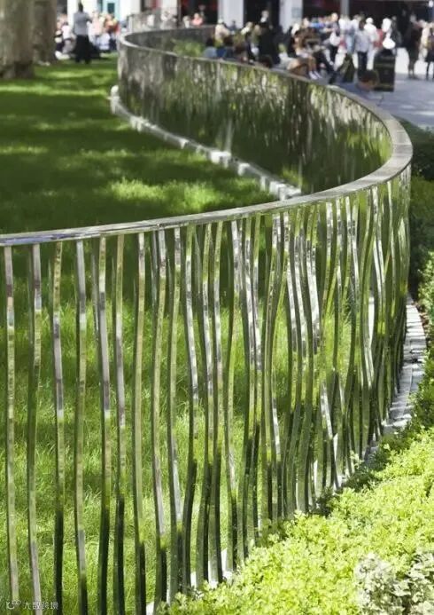 不锈钢也可以做景墙,设计师将不锈钢变成各种形状,奇妙的反应出现了,各种扭曲的镜像映在不锈钢之上,让人流连驻足。