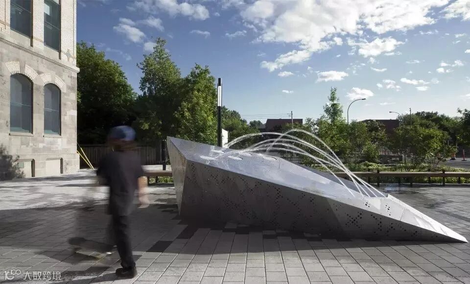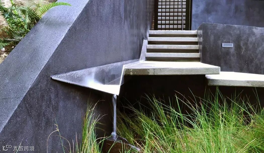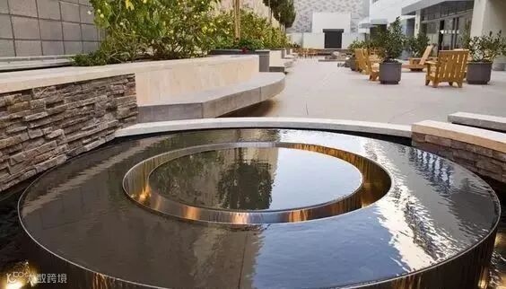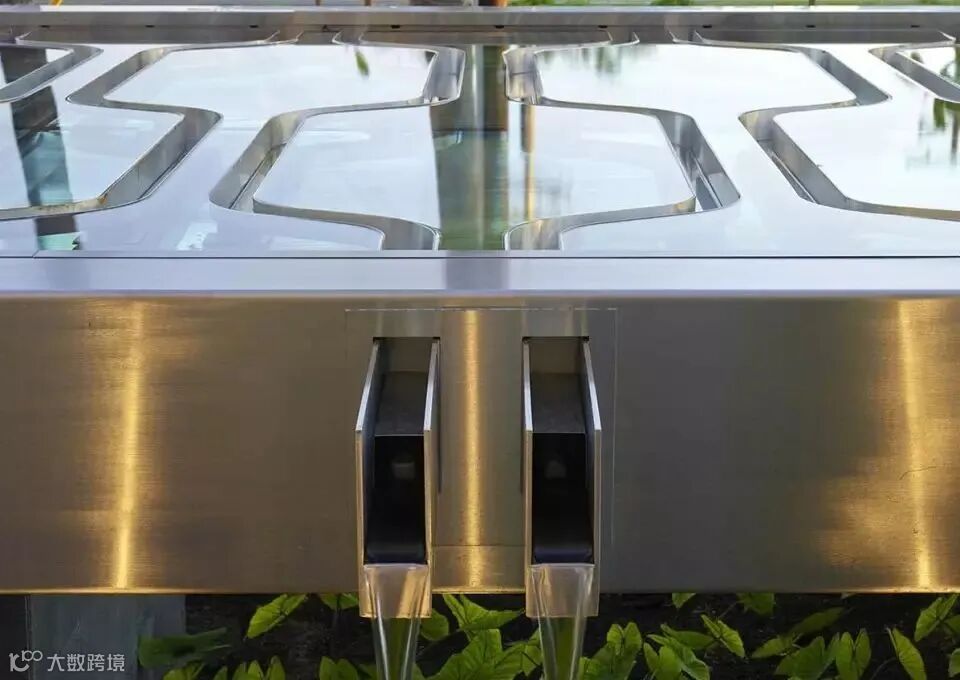 不锈钢难以产生锈迹,配合水是最合适不过了,静的,动的,加以不锈钢本身的光泽,光影效果更加丰富了。