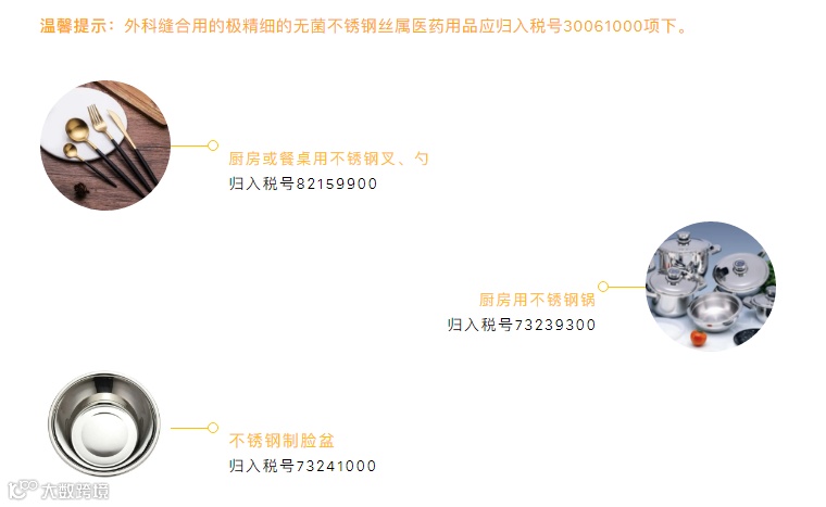 根据《进出口税则对照使用手册(2020版)》,不锈钢主要归入品目7218至7223项下。