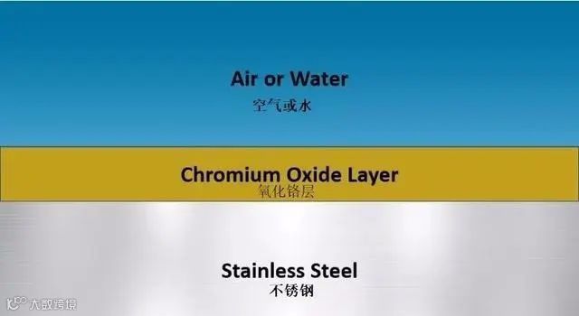 不锈钢钝化层(铬与氧气发生反应,从而在材料表面形成一道保护屏障)