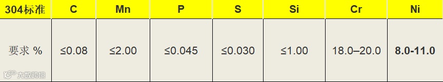 在304不锈钢标准中,镍的含量必须是8.0以上