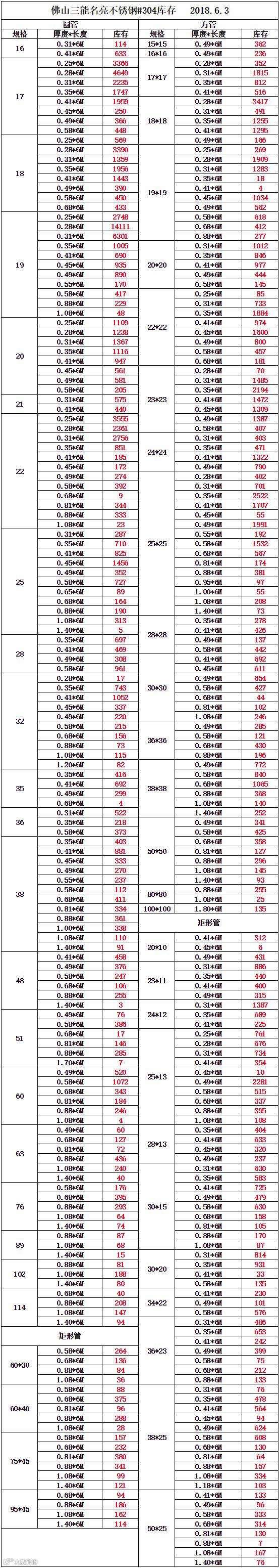 2018.6.3 佛山三能名亮不锈钢管库存表(每日更新)