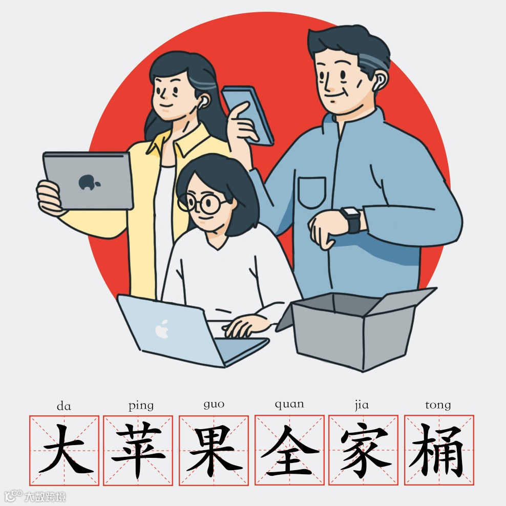 指拥有5件以上苹果产品,甚至可以实现全家人同时使用苹果产品,大桶大开心