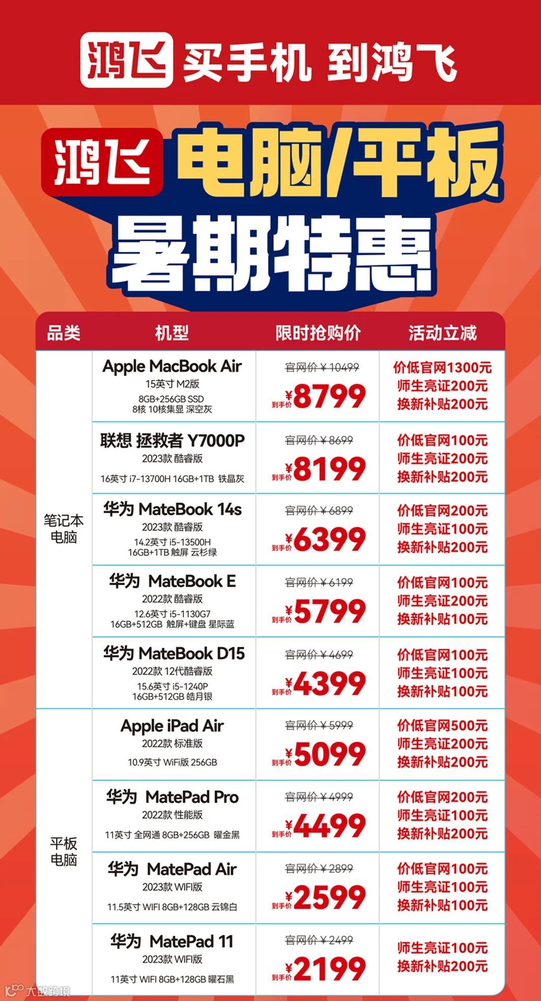 鸿飞暑期大降价,PC/平板暑期特惠!