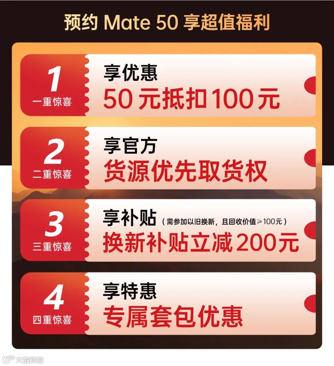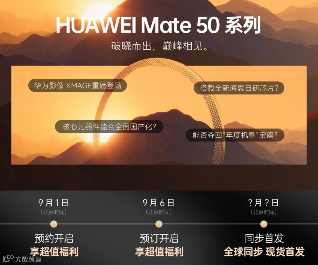 从预热海报来看,华为 Mate50 系列延续了之前的星环式后摄设计,可能类似之前的 nova10 系列一样采用了金色星环主摄,同时一轮金色圆环从山峰之巅升起预示着此次产品将有较多创新性、颠覆性的突破。