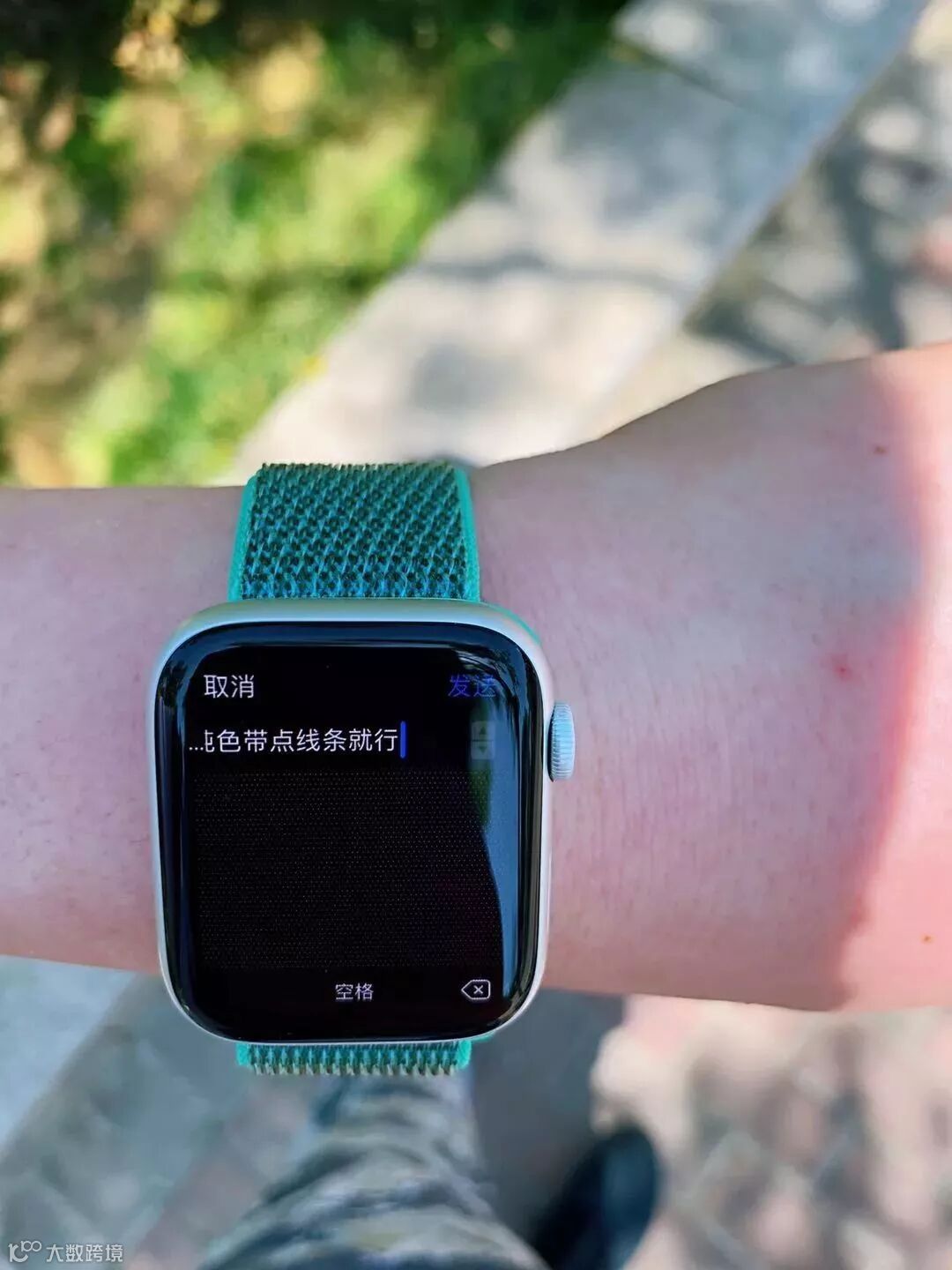 当你身处户外,收到一条微信消息时,Apple Watch Series 4 几乎不需要等待时间就可以进入到消息界面,点击回复,你就可以在手表上使用语音输入(语音识别非常精准)、涂鸦(手写输入,全面屏对于手写的支持相当给力)、表情或是设定好的快捷语来完成回复了。