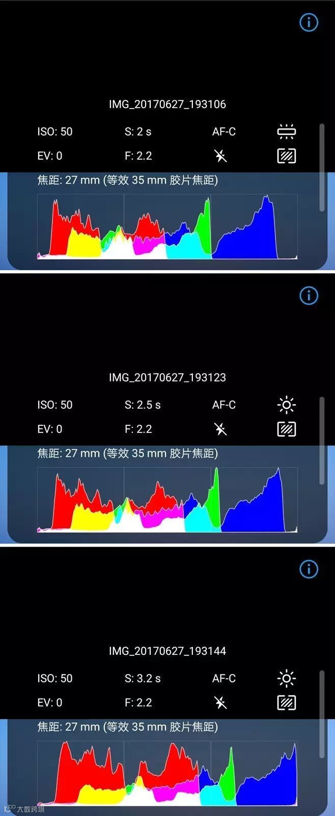 拍摄:拍摄时的天空已经全黑,唯一的光源就是亭子里的一盏灯。我们先打开专业模式,将ISO设置成50(数值越低画质越好),将曝光时间依次进行手动选择,得到不同曝光参数的图片。