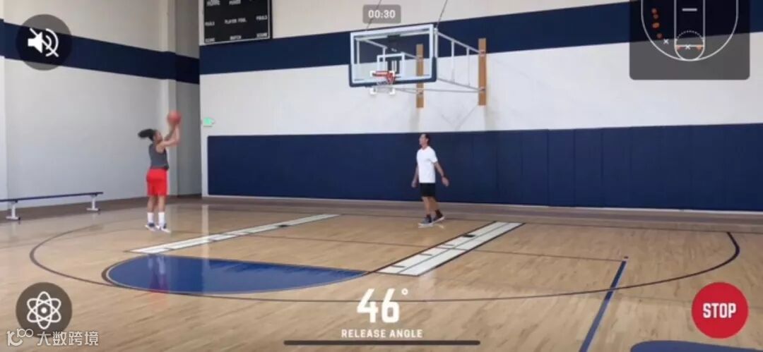 在发布会现场演示的 demo 中,HomeCourt 能够仅根据摄像头捕捉到的运动画面,实时追踪 6 个维度的数据,包括投篮类型、步态角度、投篮仰角、投篮时间、投球速度、出手高度。
