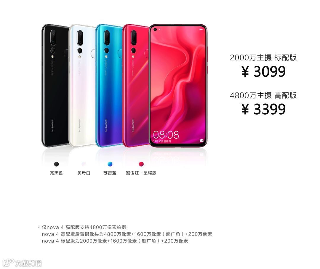华为nova4高配版搭载4800万超广角三摄