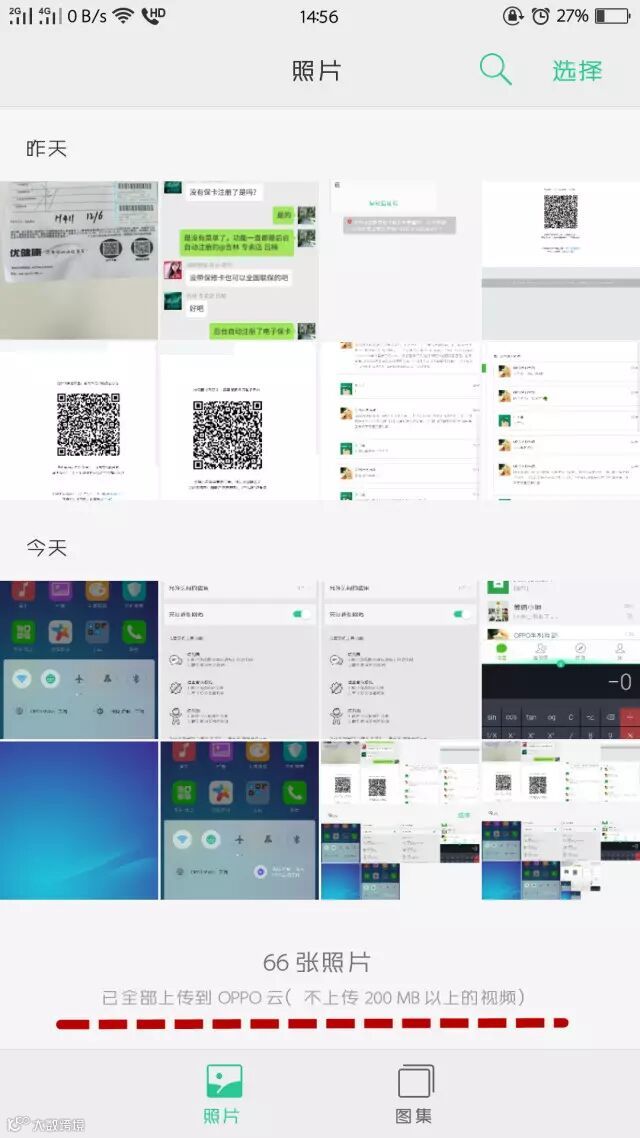 开启相册云同步后,WIFI下会自动全部同步照片、图片、视频到OPPO帐号绑定的云相册,数据网络下不同步,防止耗费过多流量。此外,内存卡里面的视频和照片是不同步的。在相册的照片界面,还可以实时查看上传状态。