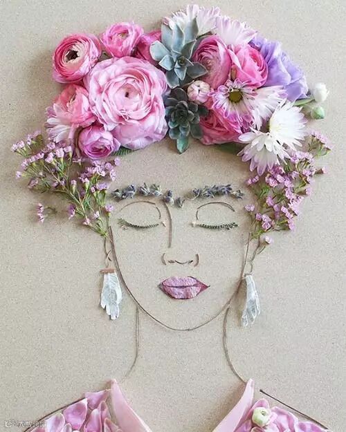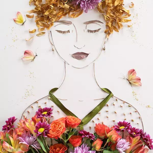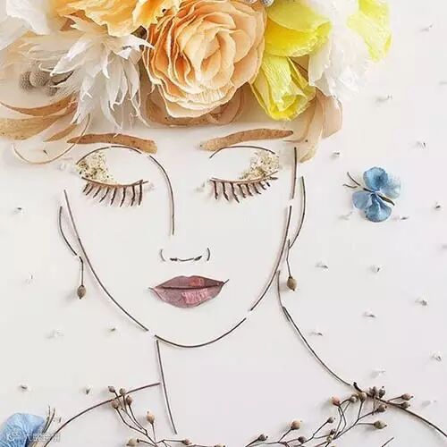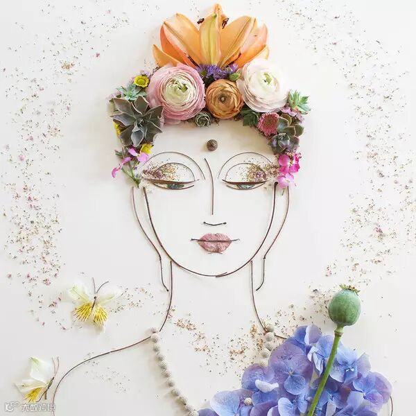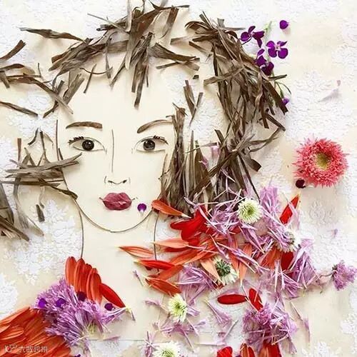 小心翼翼地在桌上摆出轮廓,Vicki要屏住呼吸,一声喷嚏可能就让她前功尽弃。筛选出一片新鲜的玫瑰花瓣作为女孩的嘴唇,用镊子夹起一小片勿忘我的花瓣,这会使得画面中的姑娘拥有一双明亮的眼睛。这样的动作反复上百遍,一副作品才得以完成。