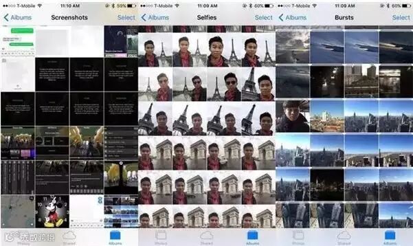 删除照片是清理iPhone空间的最简单方法,你其实也不必真的把它们都删除,只要将其转移到计算机或云端就行了。在清理照片时,你首先应该寻找那些不需要的,比如截屏、自拍或连拍。在iOS9当中,这类照片都拥有了自己单独的文件夹(照片>相簿>自拍/屏幕快照/连拍快照),清理起来也更加方便。