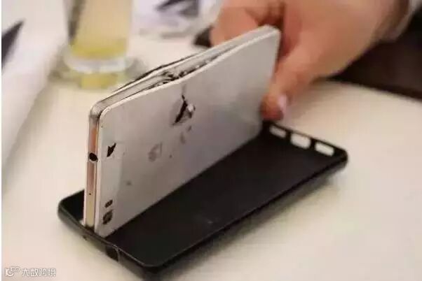 可是,子弹没能穿透夹克胸袋里的中国产智能手机,被卡住了!