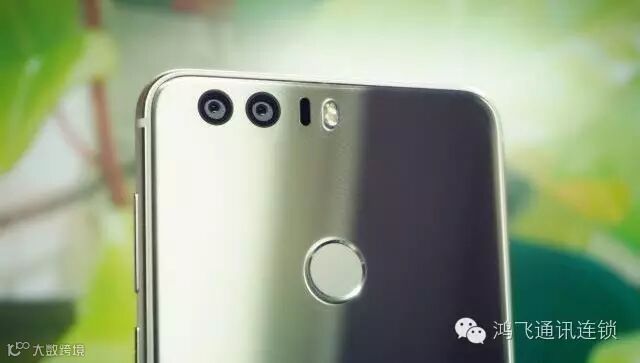 荣耀8背面从左到右搭载黑白+彩色双1200万像素摄像头,激光对焦模组,双色温闪光灯和将智灵键融合在内的指纹识别模块。观察机身背面,仅有双色温闪光灯和指纹识别模块进行开孔,摄像头与激光对焦模组都隐藏在玻璃下,这样的设计极大的提升了背部的一体性,同时也体现出荣耀对这块玻璃光学性能的自信。