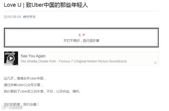 昨天的朋友圈又炸了。内容是神州写给Uber,一封名为《Love U|致Uber中国的那些年轻人》的“情书”。
