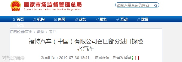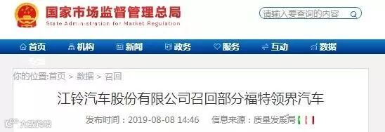 召回2018年12月18日至2019年1月31日期间生产的福特领界汽车,共计1587辆。