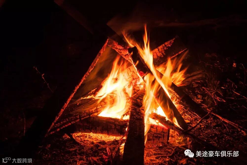 在沙滩边燃起一堆篝火