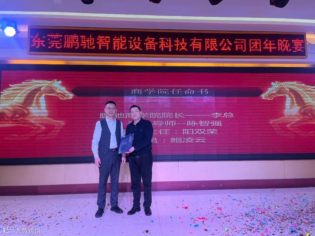 东莞鹏驰智能设备科技有限公司2025年尾牙晚宴暨鹏驰商学院揭牌仪式隆重举行。公司全体同仁齐聚一堂,共同回顾2025年的奋斗历程,展望2026年的崭新篇章,并见证了公司人才培养体系的重要里程碑——鹏驰商学院的正式成立。